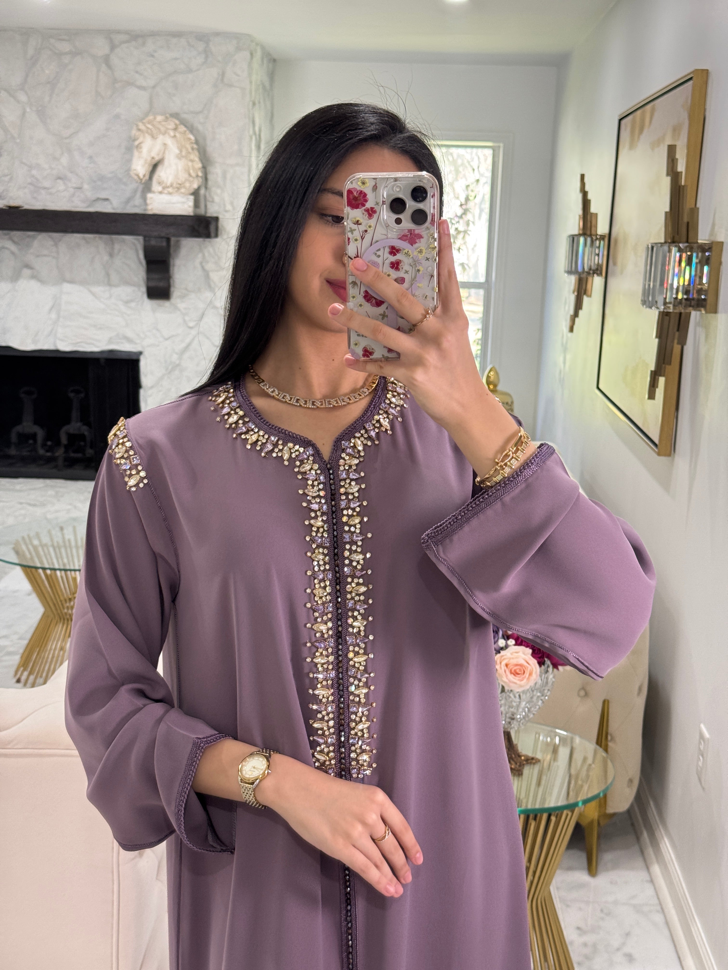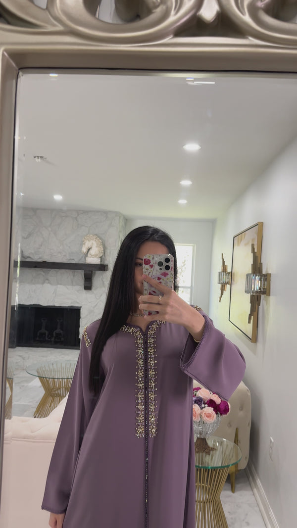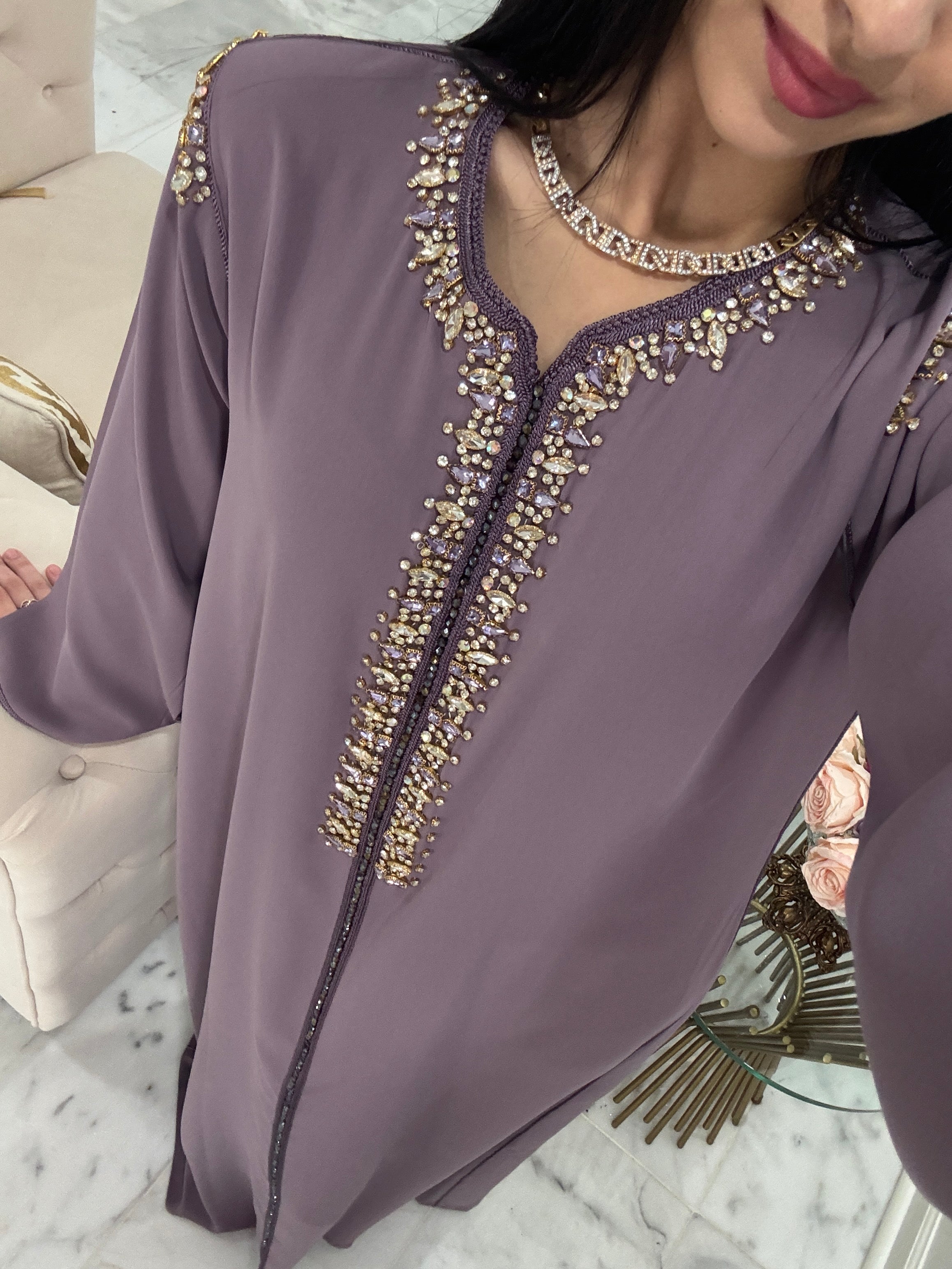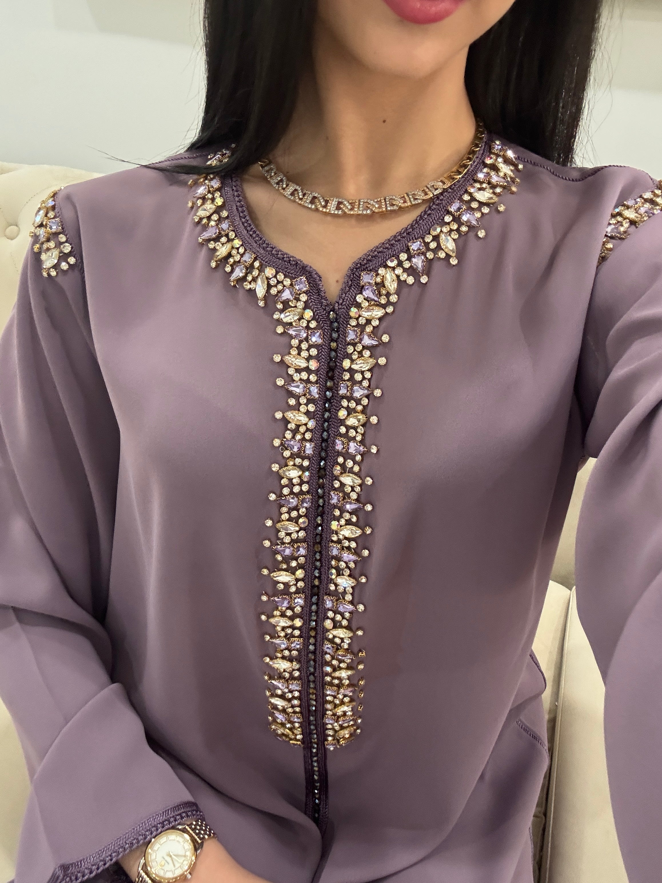 Inspired by the quiet beauty of twilight, the Luna Kmiss shimmers in a soft periwinkle hue, evoking the tranquility of a Ramadan evening. Embellished along the center and shoulders with intricate detailing, this piece exudes timeless charm. Whether you're hosting loved ones or embracing a moment of personal reflection, Luna offers a perfect balance of comfort and grace.
